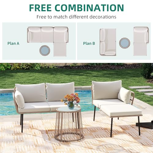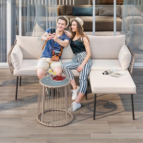 Specification: YITAHOME 3 Piece Patio Furniture Set Wicker Patio Sectional with Detachable Cushions and Coffee Table Outdoor Furniture Set L-Shaped Sectional Conversation Sofa Set for Backyard Porch Balcony – Beige