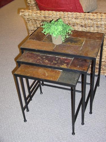 Zhongma Nesting Tables set of 3, End Tables with Slate Table Best, Solid Real Stone, Facet Table, Accent Table Size: Lg 13.8x20x20 Inch Med 13.5x18x19 Inch Sm 13x15x18 Inch